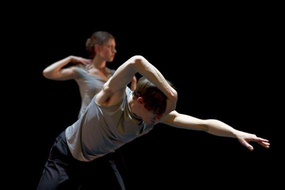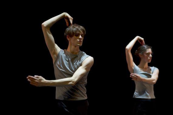 Et indépendamment des superbes films en noir et blanc d’Alain Fleischer qui magnifient et le corps des danseurs et l’architecture héraldique, la gestuelle conçue par Daniel Dobbels est une merveille de justesse qui rend compte avec intelligence de l’esprit des lieux. La chorégraphie elle-même, qui semble naître d’un silence préalable est une mise en valeur quasi architectonique de l’espace. Ensuite, la musique de Ravel s’ajuste parfaitement à ces mouvements dans un état suspendu, d’une sensibilité délicate. Bien sûr, les poses rappellent imanquablement les statues du Trocadéro et les panneaux signés Edouard Vuillard et surtout Maurice Denis, mais loin de tout ornement, l’écriture de la danse leur confère quelque chose d’essentiel, d’absolu. D’une beauté implacable. On ne s’étonnera donc pas qu’Entre les écrans du temps commence par la photo du catafalque de l’auteur de L’Âme et la danse, Paul Valéry, posé sur le parvis du Trocadéro, flanqué de la Garde Républicaine et en contrebas de quelques tirailleurs ou hussards non identifiés et finisse par l’apparition de Maria Casarès dans l’Orphée de Jean Cocteau qui termine sur ses mots : « Où êtes-vous ? ».