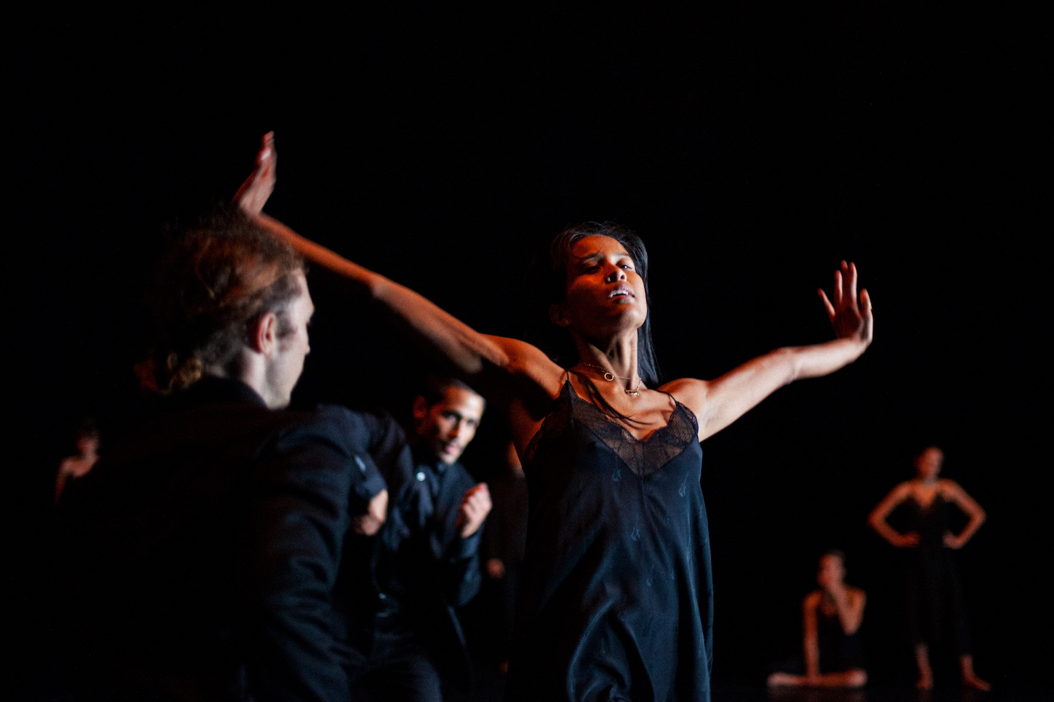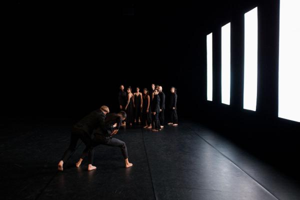 Tout cela tient à la fois par l'intensité de la relation du geste à l'émotion musicale (ce qui n'est pas tout à fait la même chose que la musique) et ce nouvel opus du chorégraphe poursuit donc avec brio la démarche déjà à l'œuvre dans LoveTRAIN2020, précédente grande réussite du chorégraphe : exprimer l'effet de la musique plutôt que l'analyser. Avec une différence majeure cependant. La scénographie reprend la forme du Studio Bagouet de l'Agora de la danse de Montpellier où le chorégraphe a souvent travaillé. Il en a emprunté, en particulier, les trois grandes baies qui irradient d'une lumière sombre dans l'atmosphère noire. Un jeu de nuances de ténèbres. Les corps nus des danseurs tranchent de clarté sur les diverses tonalités d'ombre. L'effet est différent dans la seconde partie, les costumes ajoutant des nuances sombres autant qu'agitées à l'obscurité. Pourtant, c'est le même sentiment de voir se « dégager de la lumière » depuis l'ombre elle-même comme le disent les critiques à propos de la peinture de Pierre Soulages. Une quête de ce qui fait lumière dans le plus sombre. Métaphore de ce que réalisent les danseurs qui expriment (ex-primere, « faire sortir ») la pureté de l'émotion de cette musique accompagnant un drame d'une noirceur absolue. Chorégraphe musicien, Emanuel Gat possède une large culture picturale et cet Act II & III renvoie à l'œuvre du grand peintre aveyronnais. Elle cherche ce qui fait lumière dans le noir le plus profond et cette quête s'entend au sens le plus fort de la tragédie quand bien même celle-ci est lyrique.