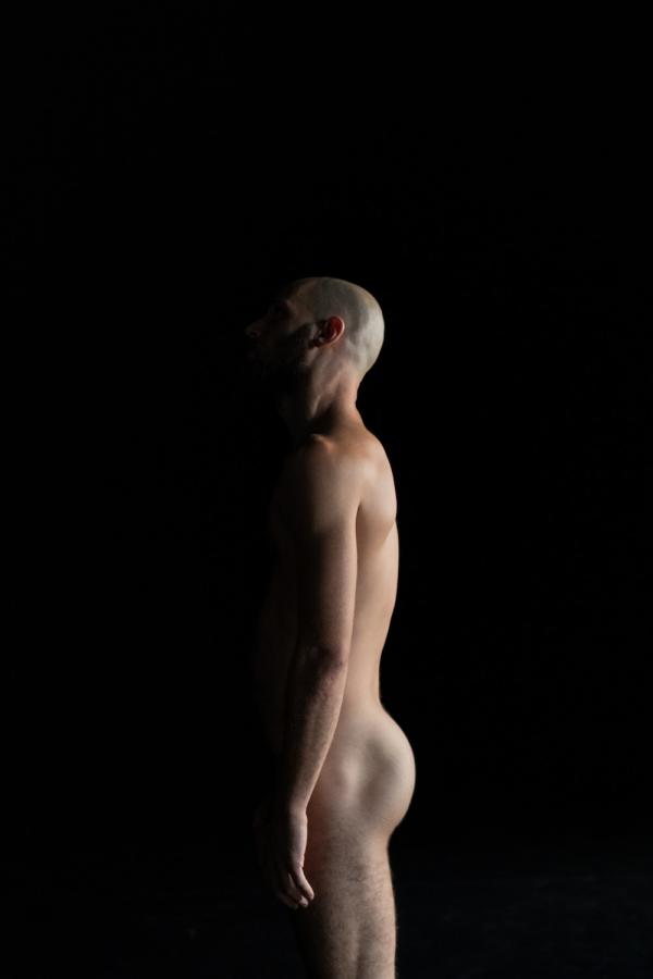 Le rideau finit à peine de se lever que la musique s'impose déjà et un homme, allongé, nu, à cour, blême dans cet univers noir, se lance dans un mouvement au sol, roulant sur lui-même, mesurant de son dos le sol, l'arpentant de toute l'amplitude de ses jambes le plus largement écartées pour s'engager dans une danse d'une vigueur et d'une passion vibrantes. Une femme entre à son tour, pareillement nue, et pareillement elle se couche et engage sa variation, moins tranchante que la précédente mais lançant ses membres, pour une manière de relevé de l'espace.
