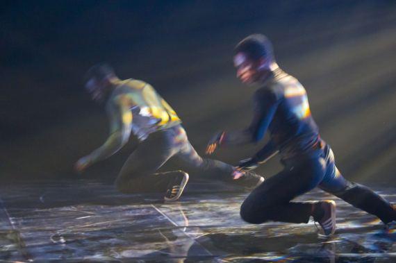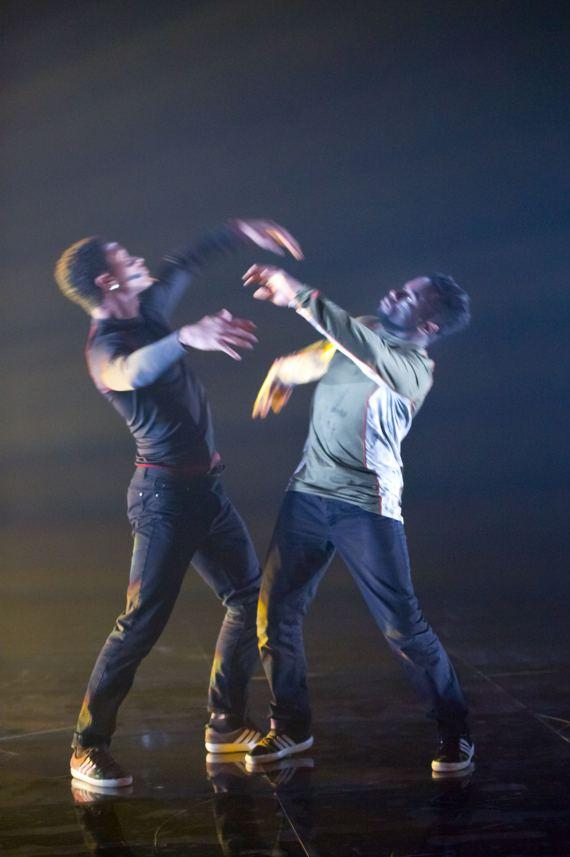 On a été frappé, dans Opus 14 de Kader Attou, par les folles traversées du plateau par une boule humaine auto-catapultée. C'était Cissé, et ici il remet ça, avec l'énergie d'un loup face à son rival et complice. Cette invention acrobatique est en train de devenir la marque d'identification d'un artiste, comme à son époque les sauts spectaculaires de Samuel Lefeuvre chez Peeping Tom.