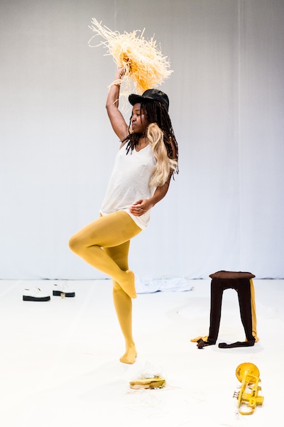 Avec Yellow Towel, Dana Michel a voulu créer, tardivement, sa danse noire, après avoir très longtemps tenu à distance la conscience de cette problématique identitaire. Elle se souvient toutefois de la façon qu'elle avait, fillette, de nouer une serviette jaune dans ses cheveux crépus, dans l'espoir de ressembler à ses petites copines blanches. En fait montréalaise, Dana Michel vient d'effectuer récemment une tournée aux USA. Elle nous a expliqué son embarras au moment de constater que du seul fait de sa couleur de peau, semble-t-il, son public américain s'est aussitôt révélé majoritairement noir. Mais aussi la difficulté à faire accepter à ce public la représentation dénuée de toute complaisance que développe son solo Yellow Towel.