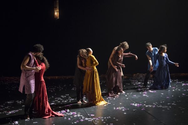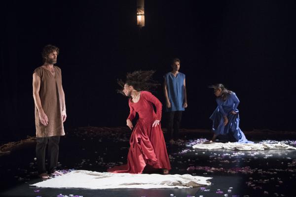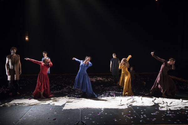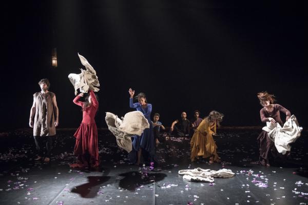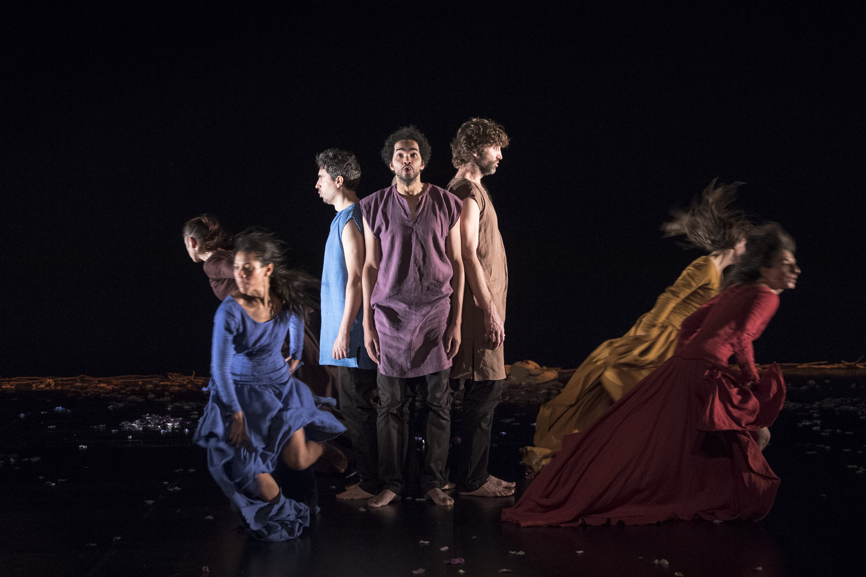 Sous de magnifiques lumières sépia de Denis Rion, s’installe une incroyable histoire. Les femmes vêtues de longues robes en lin de teintes différentes et les hommes de tuniques de la même matière, passent par des sentiments et des intentions qui parfois s’opposent totalement et parfois se rejoignent dans des instants de tendresse et de douceur.