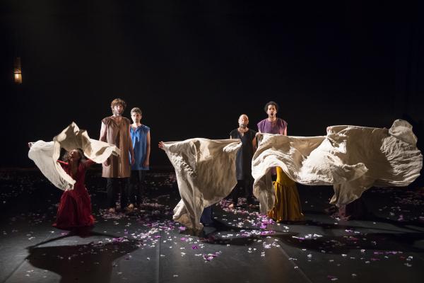 Une singulière pièce chorégraphique pour quatre danseuses et quatre chanteurs.