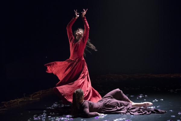 Les formidables danseuses bousculent à tout va leurs corps. Guerrières, elles chutent, maltraitent leurs bras, courent, frappent le sol puis se transforment en un instant en ravissante femme et délicieuse mère, pour ensuite retourner au combat.