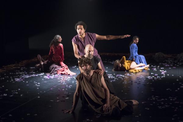 Il est évident que l’on ne pouvait pas s’attendre à voir une œuvre où la danse contemporaine est censée incarner le répertoire millénaire de l’Ecole Notre-Dame. En effet, en mettant sur scène quatre hommes interprètes de l’Ensemble Béatus qui chantent a cappela, face à quatre danseuses qui déploient une énergie farouche, le contraste, entre le chœur apparaissant si paisible et la description par le mouvement des horreurs subies par les femmes au XIIème siècle, est plutôt étonnant et détonnant.