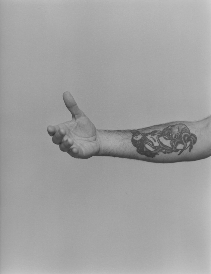 L’avancée au fil des années est tout à son avantage. Tavernini peut se valoir d’un parcours d’une richesse singulière, ayant dansé, après une formation à l’Ecole de l’Opéra National de Paris, aux Lyon Opéra Ballet, aux Grands Ballets Canadiens, dans les compagnies de Maurice Béjart, Mats Ek, Trisha Brown, William Forsythe et Angelin Preljocaj. Alors comment pourrait-il encore avoir vingt ans ? En même temps seul un danseur peut aujourd’hui, à son âge, être considéré comme un vétéran. Aussi donne-t-il l’impression que même en tant que footballeur, il pourrait continuer à engranger des fortunes. Il a par ailleurs, comme cela est la coutume chez les chasseurs du ballon rond, marqué son corps d’encre bleue.