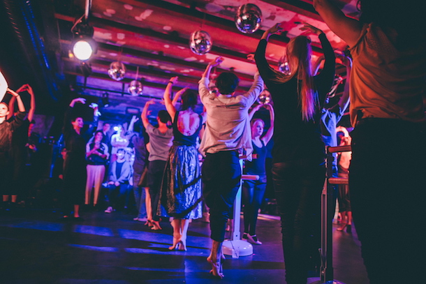 DCH : L’art chorégraphique n’est pas habitué aux horaires d’un club. Mais ça permet d’enchaîner. Un spectacle de danse se termine vers 22h, et c’est là que la danse démarre au Salò. Pour huit heures, une durée inimaginable pour l’art chorégraphique occidental!