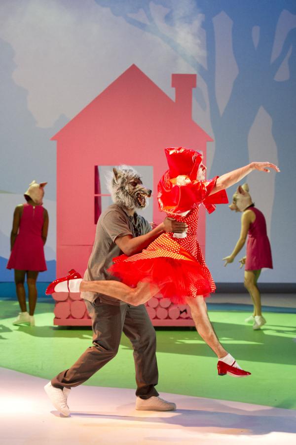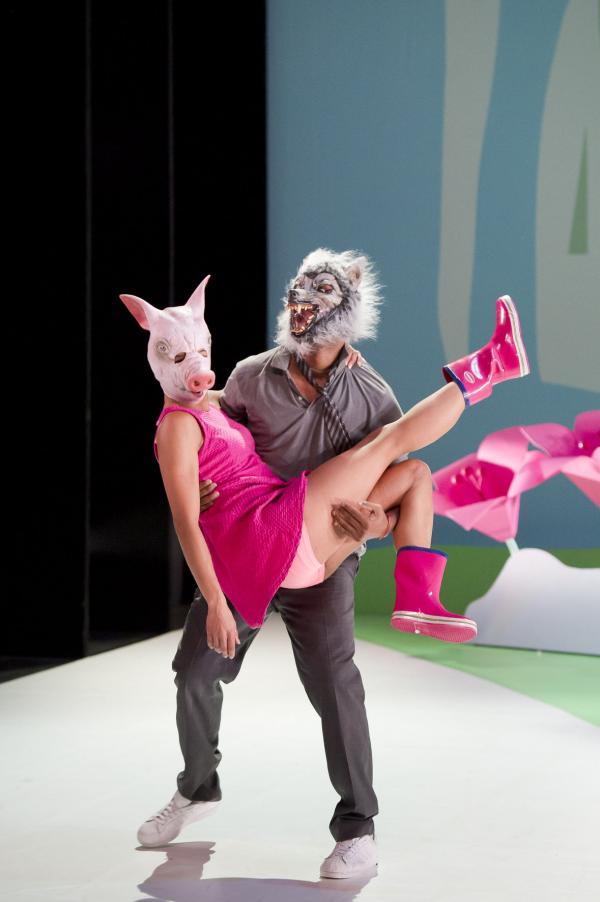 Elle ose tout, Laura Scozzi. Et le plus épatant, c’est qu’elle le réussit. Ainsi de cette « Barbe-Neige et les Sept Petits Cochons au bois dormant », une relecture des contes de fées tricotée façon hip hop et qui pourtant, sur l’échelle des risques, se situait plutôt en haut des marches. Avec une troupe d’interprètes au top, pour la moitié eux-mêmes par ailleurs chorégraphes*, elle relève haut et fort le défi de s’adresser non seulement à tous les publics, comme en témoignait en ce week-end d’ouverture du festival le nombre d’enfants dans la salle, mais surtout à toutes les intelligences. Nul besoin, en effet, d’avoir lu Bettelheim* pour repérer, dans sa savante déconstruction de certaines scènes-clés des contes les plus célèbres, le surgissement de pulsions primaires libératrices donnant lieu à quelques épisodes hautement lubrico-comiques, comme ces trois danseuses petits cochons draguant ouvertement le loup ou ces Cendrillons en string…