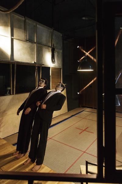 C'est le cas de Barons Perchés dont l'action se situe dans une maison à l'ossature métallique, toute découpée, ouverte aux quatre vents et surtout au regard du public qui en perçoit immédiatement, c'est à dire dès qu'il entre dans la salle, toute la potentialité scénographique et le champ imaginatif. On sent qu'il va se passer là des choses étranges, irrationnelles et forcément formidables. Et c'est le cas.