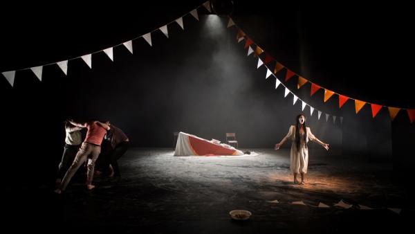 Premier spectacle de la Biennale 2021, IE agite le bocal familial. Une fête hantée et vertigineuse.
