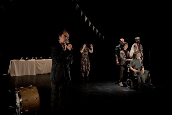 Les générations ainsi réunies voulaient pourtant célébrer (au moins) une des cérémonies qui ponctuent la vie, le mariage étant aussi présent que l’enterrement, un anniversaire ou un noël particulier, qui sait... L’ambiance se veut festive, mais le musicien (Damien Grange) joue et chante surtout du blues, dans une belle ambiguïté émotionnelle. Epoques et souvenirs se mélangent, jusqu’à l’effondrement.