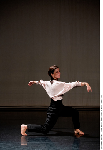 Mais comme tous ses cours étaient soutenus par des percussions, dont il jouait parfois lui-même, il s’agit d’une sorte de duo avec Samuel Ber, où ils s’accompagnent mutuellement. Mais surtout, en revenant après un détour par le contemporain à la gestuelle Mattox, elle nous raconte l’Histoire dans sa propre histoire, et particulièrement ce récit de la danse « modern jazz » qui, si elle séduisit toute une génération de danseurs amateurs ou professionnels (et se pratique encore dans de nombreux « cours de danse » à travers la France) a été mise sous le boisseau par les danseurs contemporains et même hip-hop, qui pourtant, en étaient issus. Pourquoi ? Eh bien, Carole Bordes nous en fait elle-même l’inventaire.