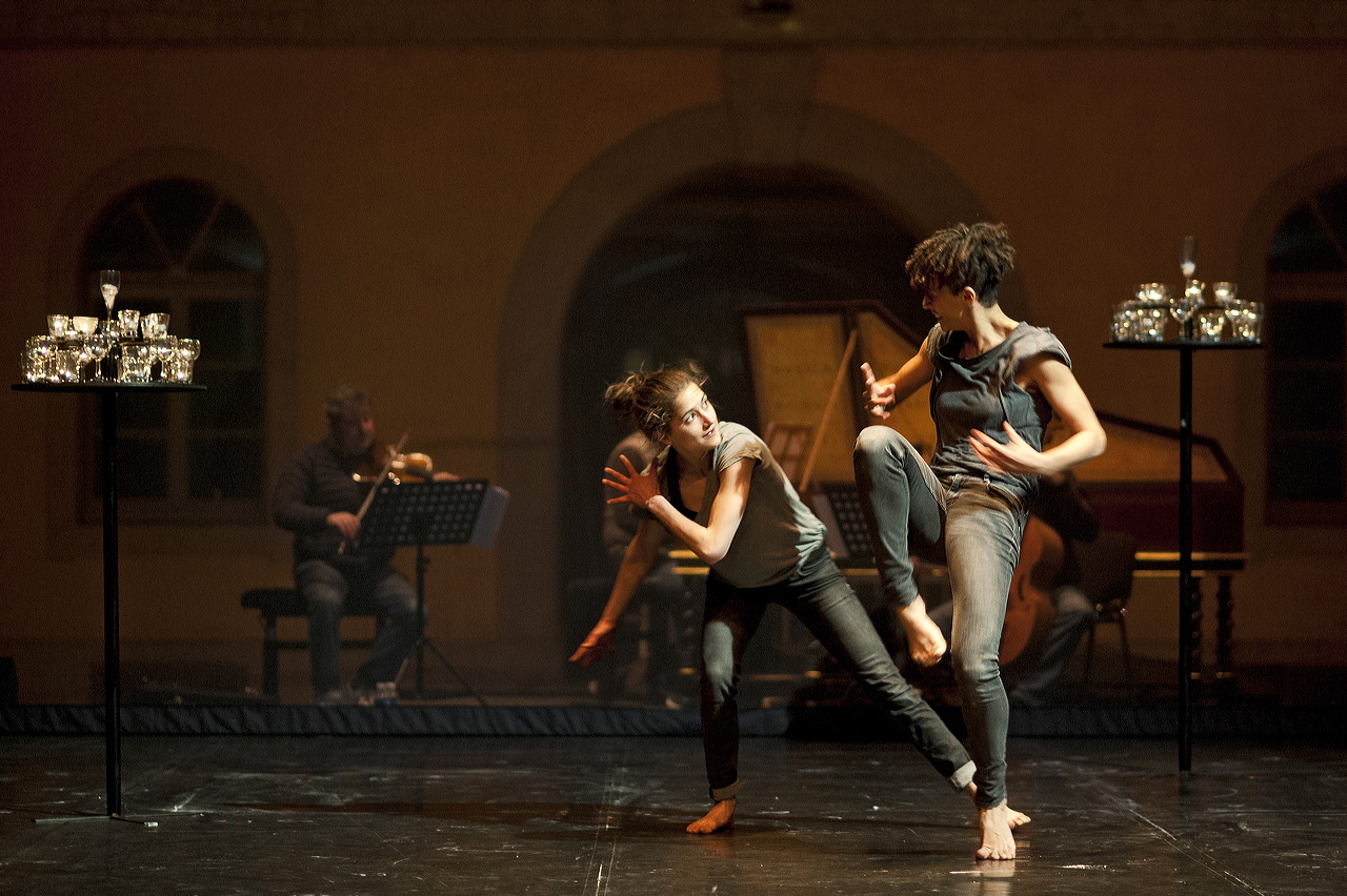Mais quelques registres d'étrangeté animent par ailleurs Chaconne. Soit la présence de trois musiciens baroques, sur instruments d'époque, paraissant inatteignables par le déménagement qui se produit sur scène. Les voici à ce point obstinés dans l'exécution irréprochable de leur précieux répertoire, qu'il en gagnent, à la longue et peut-être à leur insu, quelque chose de vaguement monstrueux, par effet de contraste.