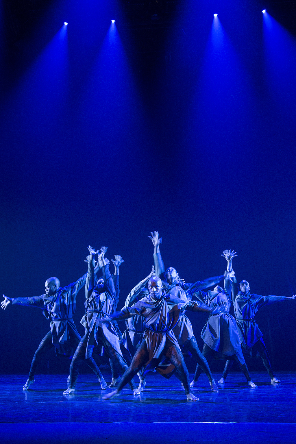 Révolte, oui, car en dépit de la tonalité sombre de l’ensemble, les neuf interprètes portent aux cotés des quatre musiciens un message de lutte et d’espoir. Le frappé de pieds de la danse traditionnelle, motif récurrent de leur gestuelle, est aussi le signe de leur résistance à toutes les oppressions. Et l’hommage vibrant rendu, par ceux qui sont encore debout, à leurs frères tombés au champ d’honneur des crimes de l’humanité.