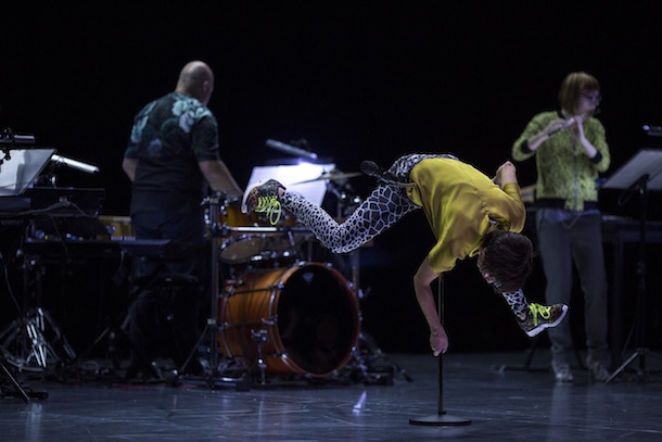 Parfois, on avait fini par trouver une tonalité un peu trop studieuse à cette entreprise. Nul doute que la rencontre des danseurs de Concrete avec les musiciens de Trance aura été l'occasion d'un grand dépassement. Réjouissant. Au nombre de neuf, ces musiciens sont ceux de l'ensemble Ictus, rompus au dialogue avec les arts scéniques, par exemple au côté d'Anne Teresa De Keersmaeker ; sinon, tout récemment dans l'opéra-comédie rock Meyoucycle de l'intrépide Eleanor Bauer.