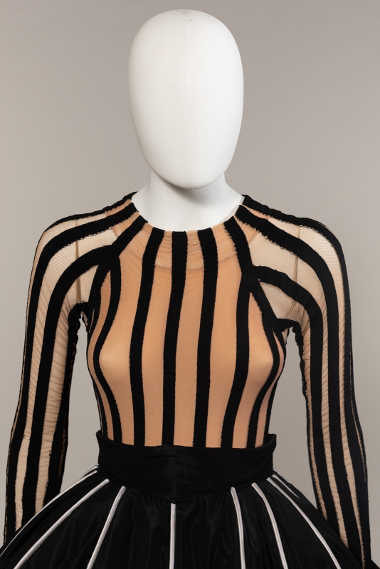 Dès l’entrée, le ton est donné. Le visiteur évolue sous des volutes de papier évoquant avec finesse et légèreté le dessous de tutus comme suspendus et découvre de somptueux costumes d’Hervé Léger pour "Rythme de Valse" chorégraphié par Roland Petit à l’Opéra de Paris.