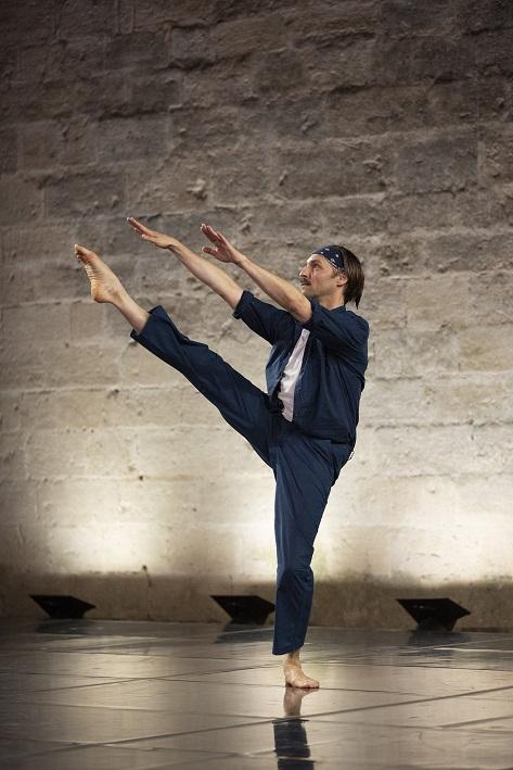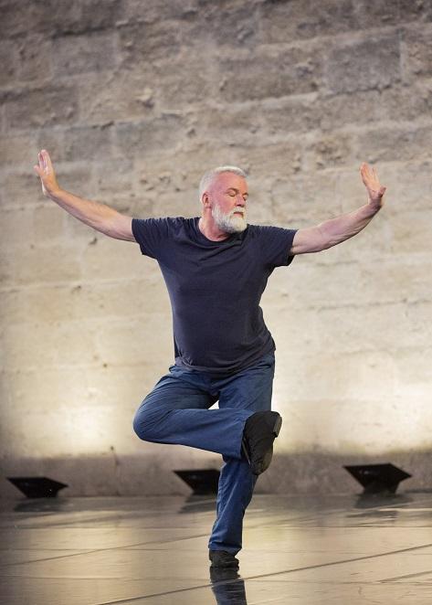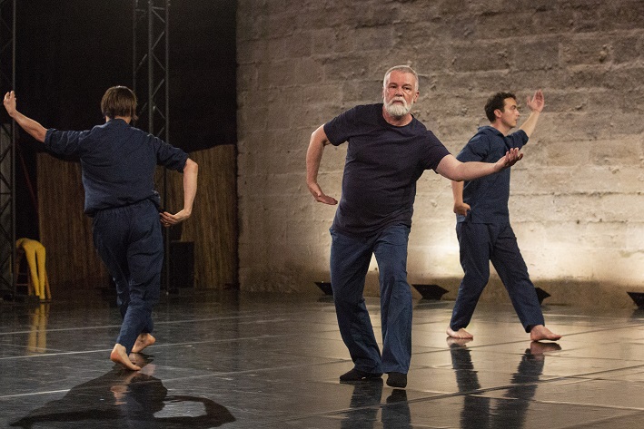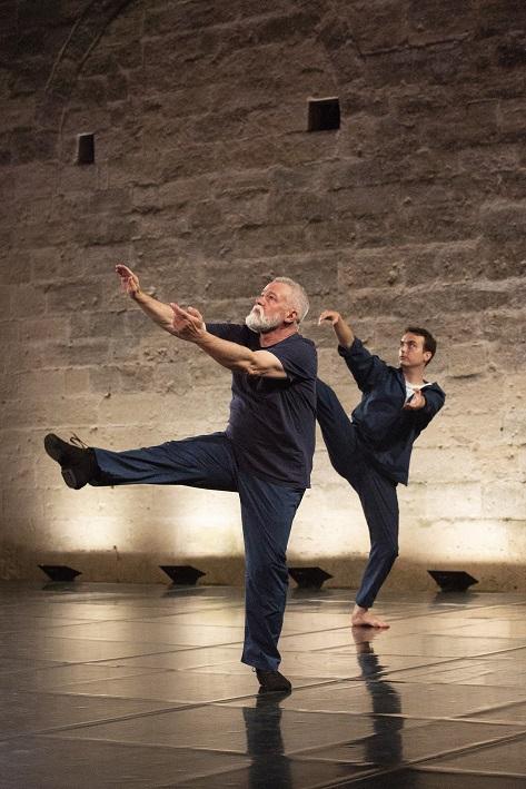 Pourtant, la balade dans le temps commença par un classique. « Pas forcément gai », prévint Larrieu, ce soir-là en rigolant. Mais beau : Avec le temps de Léo Ferré. A partir de là, tout fut à lire sous cet angle, face aux murs centenaires de l’Evêché qui servent de fond de scène. Et Larrieu reprit sa danse d’antan, où chaque geste prend son temps, ce qui lui permet d’exister même après son incarnation sur le plateau. Le monde n’est plus le même, et la danse non plus, ni les interprètes.