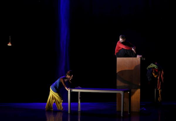 En découle une fluidité permanente qui sert la thématique. Louise Hardouin qui rejoint Jules Sadoughi sur scène vient aussi du cirque, issue de l’Académie Fratellini. Ce choix d’interprètes circassiens confère au spectacle une dynamique constante. Ils passent d’une séquence à l’autre dans un mouvement continu où l’acrobatie n’est jamais gratuite mais illustre une situation.  Les mots de Mariette Navarro résonnent avec bonheur. Elle manie la langue avec humour et poésie inventant des cascades d’allitérations désopilantes dont l’eau sous toutes ces formes est le dénominateur commun. Louise Hardouin et Jules Sadoughi se les approprient avec aisance. Les sons créés par Patrick de Oliveira renforcent par moments une montée de l’inquiétude, notamment avec ces bruits qui évoquent des tempêtes de sable et cette avancée irrépressible du désert.
