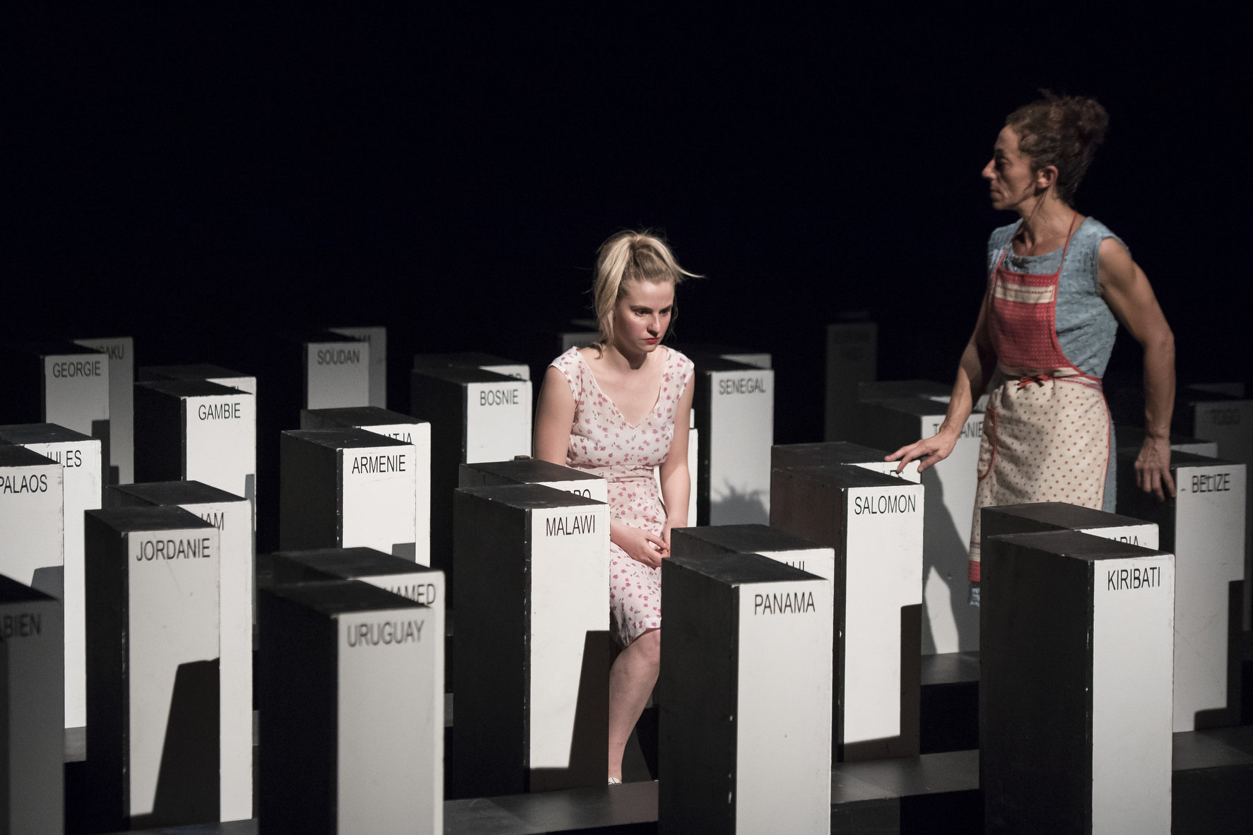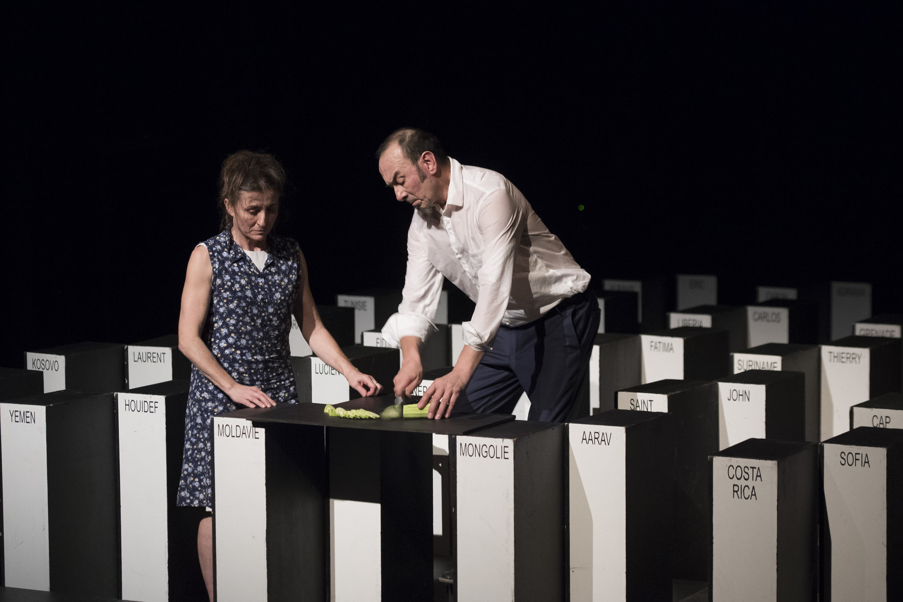 La pièce finit avec le nom des trois cents familles ou entreprises les plus riches dressés en mur infranchissable. Maguy Marin a volontairement choisi de ne pas prendre de gants, ni chercher à brouiller les pistes. Entre Agit-Prop et pièce militante, Deux mille dix-sept s’attaque clairement à notre époque et en tire un bilan pessimiste.