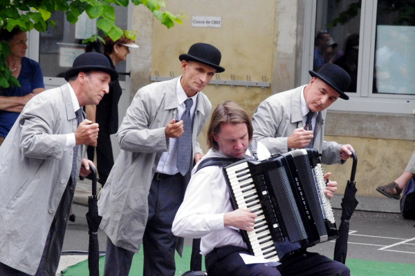 Le surréalisme est aujourd'hui entré dans les mœurs. Tout le monde connaît son Duchamp et son Breton, mais quand leur esprit s'incarne ainsi au coin d'une rue, ce n'est pas pareil. Pourtant, Du & nichts ne vont pas jusqu'à promulguer un manifeste, même pas un "zappons le zapping" qu'ils soutiennent à merveille. Leur présence se suffit à elle-même, dans une précision chirurgicale du geste artistique et de chaque unisson corporel.