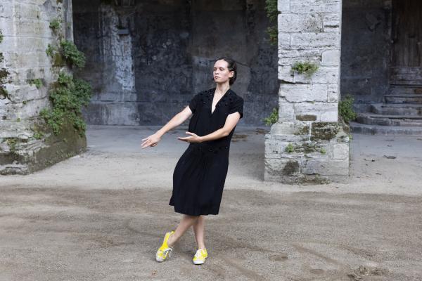 Elle est entrée à jardin. Après le flûtiste. Immédiatement, rien qu'au regard, tout était déjà là ; ils n'étaient pas venus pour rigoler. Cela allait être concentré et austère jusqu'au revêche. Le flûtiste, Michael Schmid, avait levé très lentement sa flûte traversière, apprivoisé l'air, puis utilisant la technique du souffle circulaire, était parvenu à créer un son diphonique : plusieurs sons simultanés dans le crescendo et le tout dans un seul mouvement sonore. Une performance… Et le visage du musicien en disait tout l'effort. Puis la chanteuse s'est installée à cour. Et la danseuse entra donc, à jardin.