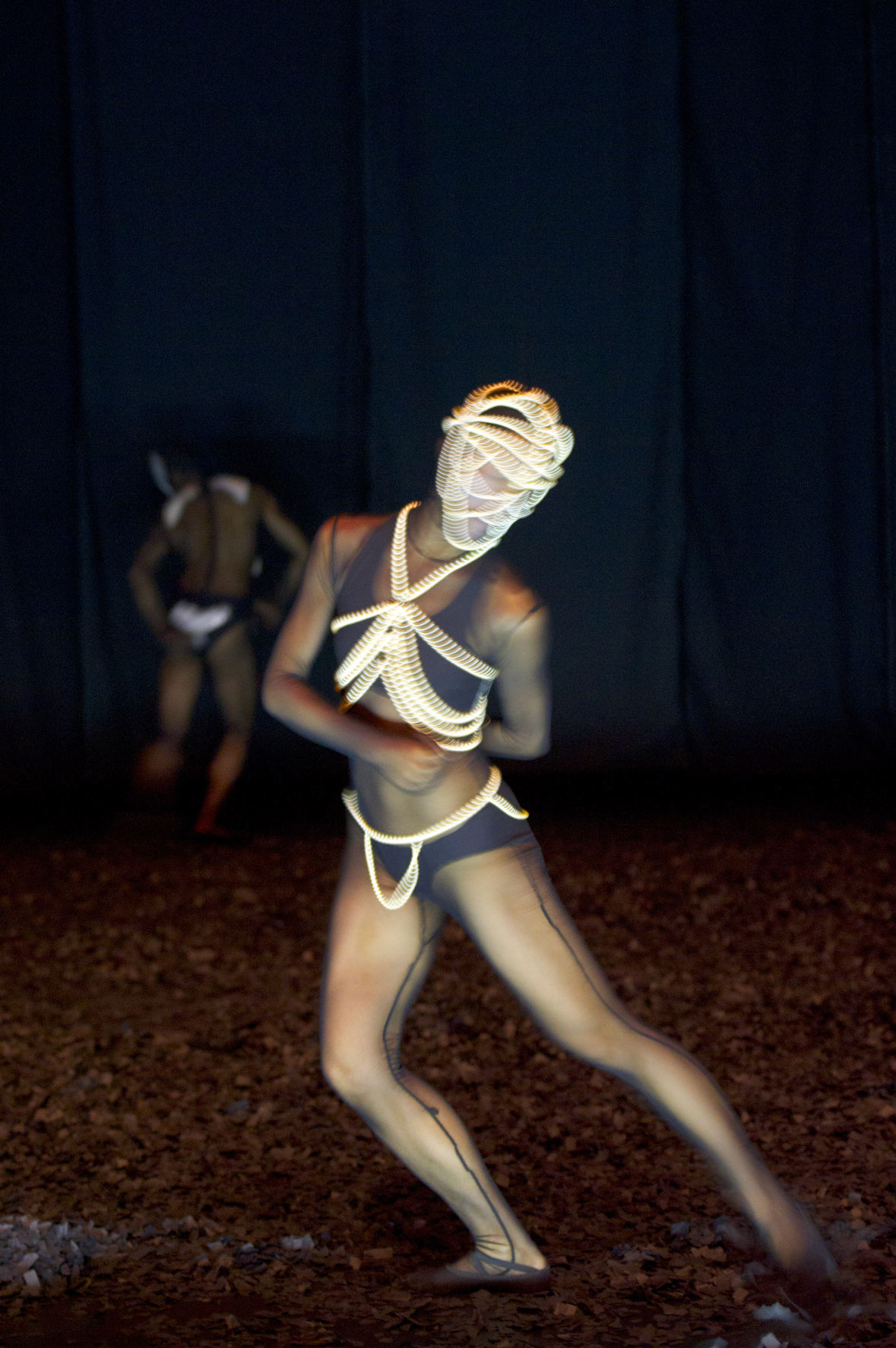 Anne Collod : Il y a moins l'idée de passer d'une culture à une autre. L'idée est celle d'un voyage où les morts nous amènent à une transformation, ou plutôt où les vivants et les morts se transforment mutuellement. Aussi, le spectacle évolue du sombre au plus clair, en passant par une étape très colorée. Il y a tout un jeu sur le rêve et la mémoire, notamment dans la mémoire personnelle de chacun des interprètes. Cette mémoire-là se parcourt par étapes, en franchissant des seuils.