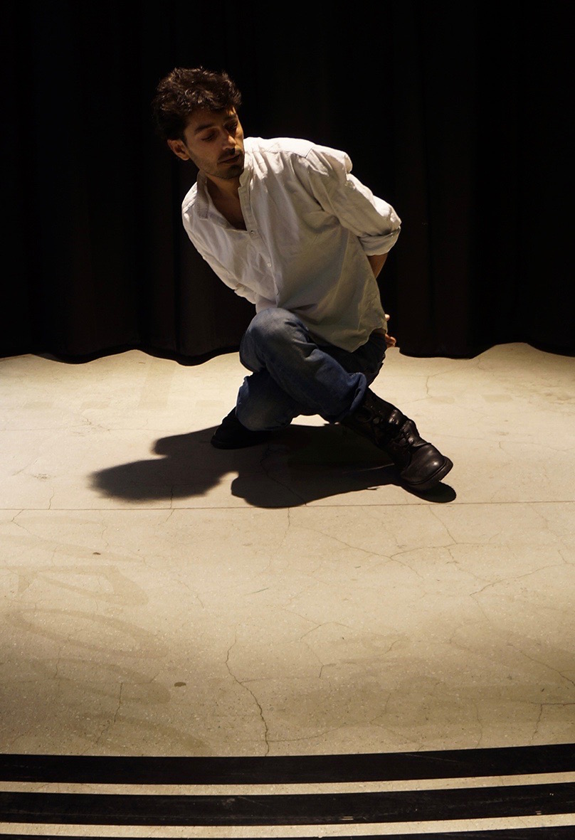 Mithkal Alzghair : Rami Farah est Syrien et a commencé les études en danse à Damas en même temps que moi. Il réalise aussi des films documentaires? Nous nous sommes recroisés en France et je voulais absolument qu’il participe à cette pièce. En Syrie il était activiste. Il filmait la réalité. Quand le régime a commencé à le menacer, il était obligé de partir. Shamil Taskin vient d’Istanbul où il est retourné vivre. Je l’ai rencontré pendant ma formation à Montpellier.