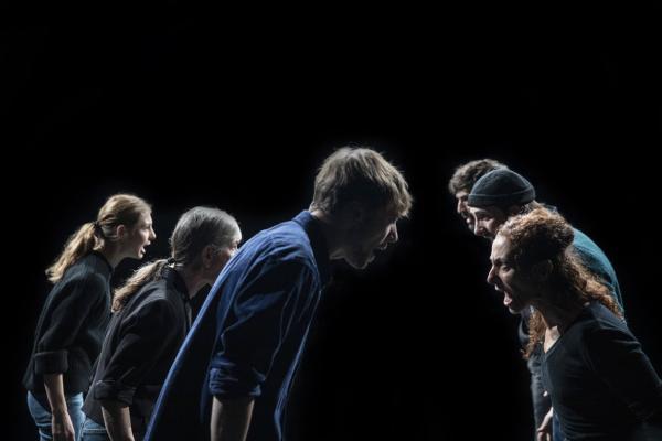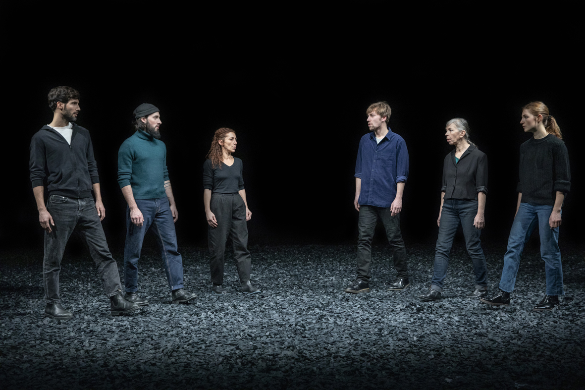 « C’est une pièce sur le temps présent », dit Pontvianne. Une partition qui se termine dans un furioso, un « Now ! » collectif qui évoque autant un « No ! » révolté. Sur un lointain écho de romantisme musical, on vient de traverser un univers très beckettien, où six humains chantent une partition contrapuntique tel le chœur antique d’une tragédie universelle. La réduction à l’extrême est le résultat d’un long processus, passage obligé selon Pontvianne: « Il y a eu trois ou quatre pièces avant la pièce et tout a commencé par le mouvement. La voix est venue plus tard. » Et la chorégraphie est devenue une danse des cordes vocales qui ne se contentent pas d’émettre des sons mais impulsent le corps de chacun.e.