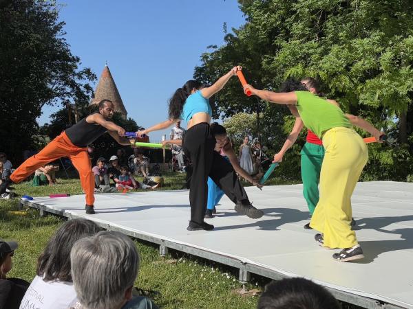 Les groupes amateurs et semi-professionnels du département et au-delà se sont succédé sur le parquet du parc, éclairés par l’intense lumière solaire, accompagnés de bandes enregistrées diffusées par une puissante sono. Nous avons vu Les Églantines, l’association La Marmite, le Conservatoire du Grand Chalon, le groupe Tocade, l’École de danse urbaine d’Autun, l’École de danse de Cluny, L’archipel, le Centre Nilda Dance, le Jeune Ballet désoblique, le groupe amateur de Bonnay, Black Dreams, le Conservatoire du Creusot, l’Espace de rue de Chalon, le sextuor féminin Soma, l’Atelier de danse d’Autun et InciDanse !. Nous a fait forte impression l’Espace de rue de Chalon, dont la trop brève prestation à base de hip-hop et de cerceaux de GRS était de haute volée.