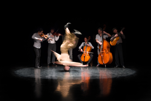 Mourad Merzouki ne se contente pas d’illustrer cet univers musical et esthétique que d’autres avant lui, au parcours plus académique, ont déjà exploré. Il a l’intelligence de placer le principe même de sa pièce sous le signe de cette folia baroque dont elle porte le titre. Le mot italien, qui claque ici comme un manifeste, se lit à plusieurs niveaux. Il désigne tout d’abord à une branche particulière du répertoire musical du XVIIe siècle qui accompagnait des danses populaires, selon un principe simplifié d’enchaînement harmonique, dans une virtuosité aussi expressive qu’assumée. Le terme s’entend également comme un appel au déchaînement et à la transe, celle par exemple de la fameuse tarentelle des Pouilles italiennes. Au-delà de ces références historiques, il apparaît enfin comme la métaphore joyeuse du principe créatif à l’œuvre avec cette création, qui marie avec allégresse formes et styles sans souci de frontières normatives.