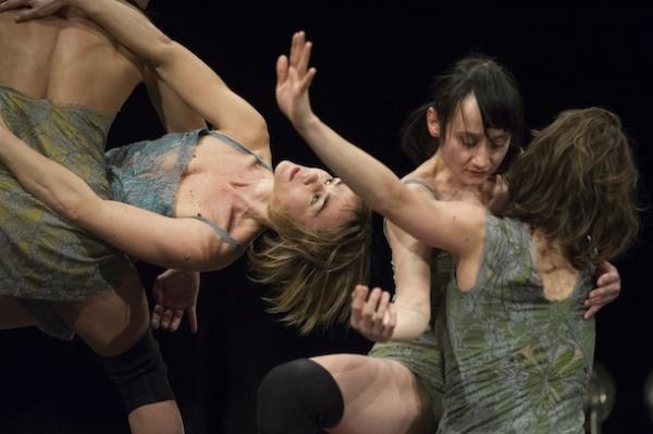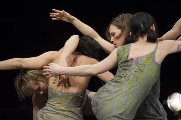 Les quatre danseuses entrelacées se mettent en mouvement de l’intérieur. Il est toujours fascinant dans les chorégraphies de Myriam Gourfink de voir cet espace-temps si particulier qui est celui que parcourt le corps - nerfs, tendons et muscles pour bouger. Bien sûr, tout cela se passe dans un ralenti organique qui ressortit à la méditation.