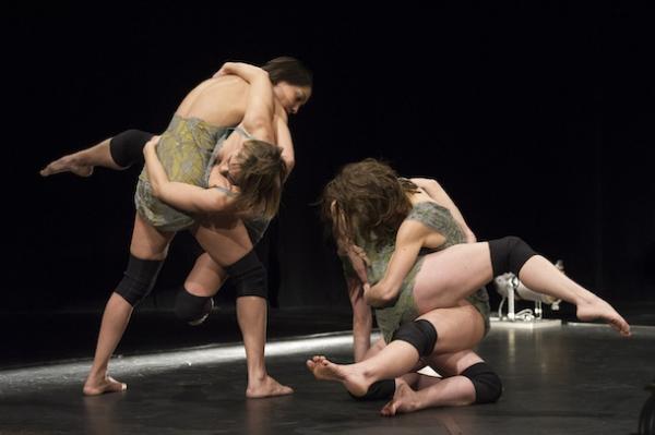 Les danseuses épousent ce flux, l’accompagnent avec leurs maillots de dentelle grise, donnant lieu à des emboîtements, des corps à corps, des dos à dos. Comme souvent chez Gourfink, la chorégraphie semble celle d’une impulsion initiale qui se déroule pour revenir au point de départ, au point mort pourrait-on dire.