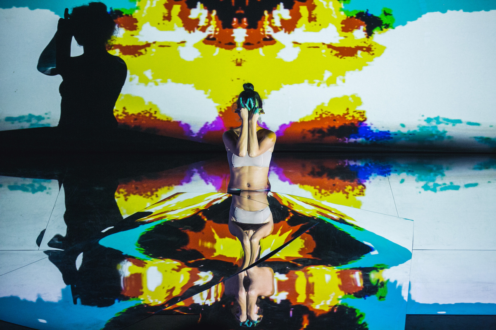 Le visage toujours caché, la danseuse se déploie avec lenteur comme un corps désarticulé conservant ainsi une grande part de mystère. Et, au fur et à mesure, par un subtil jeu de lumière, ses impulsions font apparaitre sur l’écran des animaux marins provenant des abysses. Ces ombres portées évoluent comme si le personnage remontait du plus profond des océans. En maniant les tôles, qui font office de miroir sur lesquelles Yara évolue, naissent des vols de raie Manta puis, comme par magie, un magnifique oiseau blanc au long bec.