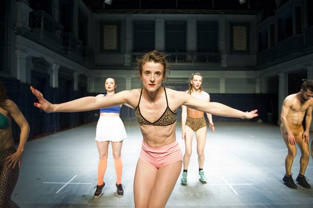 De passage au Théâtre des Abbesses avec une troupe d’athlètes chorégraphiques, Jan Martens soumet ses interprètes à une épreuve physique impressionnante. Pas seulement doivent-ils affronter leur propre épuisement et leur sueur, mais en plus leur faut-il suivre une chorégraphie millimétrée et se fondre dans des rythmes collectifs des plus rigoureux.