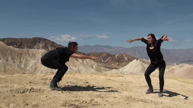 Quand les sons ciselés du maître commencent à poser leur repères, les silhouettes de Mié Coquempot et Jérôme Andrieu évoquent des situations vécues (et filmées) par eux-mêmes dans les grandes plaines et les paysages rocheux du Grand Ouest californien. Cette première partie, extrêmement dépoilée, trop longue encore (mais n'est-il pas question de traversée?) cache plusieurs références à la culture des Indiens des Plaines. "Nous nous sommes inspirés de leur culture et de leur système d'écriture", confirme Coquempot.