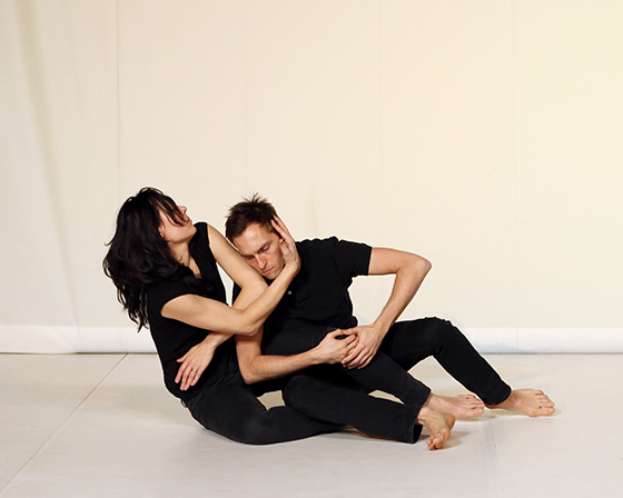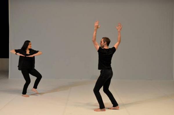 Noir sur blanc: Un homme, une femme, un espace presque immaculé. Les silhouettes, articulées mais sans accentuer les ruptures, se posent comme sous le pinceau d'un invisible calligraphe. Les frappes des pieds rythment le temps, leur complexité allant crescendo. On comprend donc, dès cette entrée en matière (plastique), le pourquoi du titre. Le dialogue des frappes devient une vraie partition percussive. L'énorme écran, installé en position avancée, reste vierge. Et on attend avec la plus grande curiosité de savoir comment la musique de Pierre Henry va résonner dans cet espace visuel, neutre et graphique.