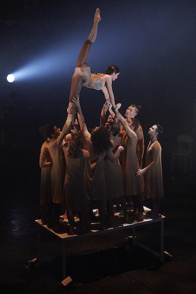 Après leur collaboration pour le dernier spectacle des Colporteurs Sous la toile de Jheronimus, hommage circassien à Jerôme Bosch et à l’inspirant Jardin des délices, Antoine Rigot et Alice Ronfart s’attaquent à un genre bien différent : le spectacle de fin d’études, ses trapèzes, mât chinois, tissu et roues Cyr. Mais cette année, également du fil, de la bascule coréenne, et une évocation de « capillotractage », discipline foraine ancestrale remise au gout du jour avec humour par les finlandaises Sanja Kosonen & Elice Abonce Muhonen. Beaucoup d’explorations en perspective, beaucoup de possibles …