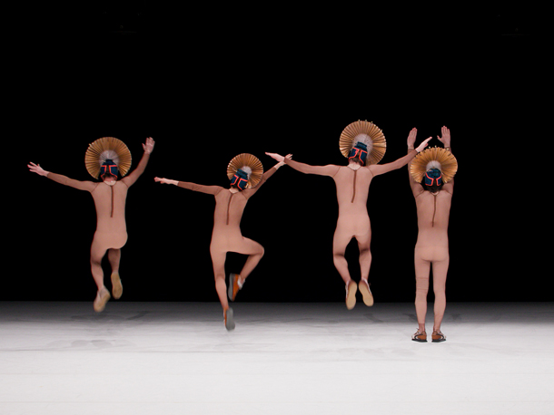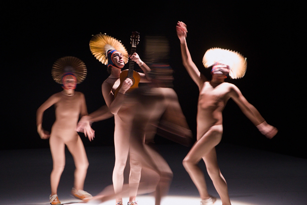 Etienne Cuppens : Nous utilisons quand même des costumes. Ce sont les mêmes que ceux de Nos rituels. Nous les avions créés avec le désir de trouver un équilibre entre le corps : la possibilité de parler de nudité sans être nu, et la fantaisie que nous aimons développer. Ces costumes sont à nouveau un point de départ idéal pour traverser tous les sujets, laisser une place aux fantasmes des spectateurs.