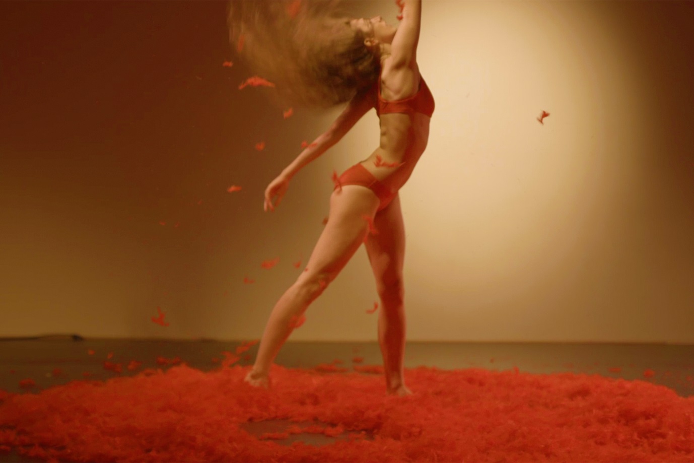 Beaucoup de mots, car Cholet raconte ici son histoire et donne à voir la réappropriation de son corps et de sa vie, par un texte qu’elle commença à écrire directement après avoir quitté la compagnie Troubleyn de Jan Fabre. Mais ce solo est en même temps - et on pourrait dire, malgré sa visée militante - un acte authentiquement artistique. Au beau milieu d’un lac de plumes rouges, Cholet danse une mort du cygne à sa façon, se révoltant contre l’emprise d’une sorte de Rothbart universel qui, au lieu d’appartenir à un monde imaginaire, sévit dans le réel pour malmener les rêves du cygne blanc, le transformant en cygne ensanglanté. Et Cholet de se jeter dans des cabrioles furieuses, s’agite et utilise l’appel d’air produit par sa chevelure pour balayer le duvet rouge qui couvre le sol. Elle tape sur son corps, les mains remplies de plumes et affronte l’épuisement physique...