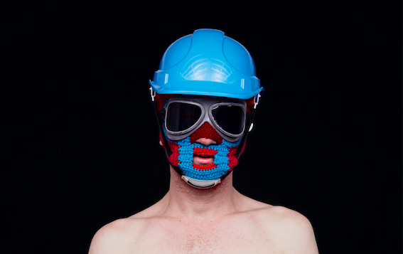 La pièce est construite comme un long plan-séquence où le glissement de la gestuelle permet la transition, sans heurt et sans interruption, à l’exception de la fin, nous y reviendrons. Tout commence donc dans le coin haut de jardin. Le groupe s’est constitué. Ils sont cinq. Ils attendent sans doute quelque chose, à l’image de cette figure immobile détachée des autres et qui toise un adversaire absent. Une fausse tension, faite de postures et de conventions, avec les costumes indiquant le rôle : lunette de natation, casque, chèche et blouson…