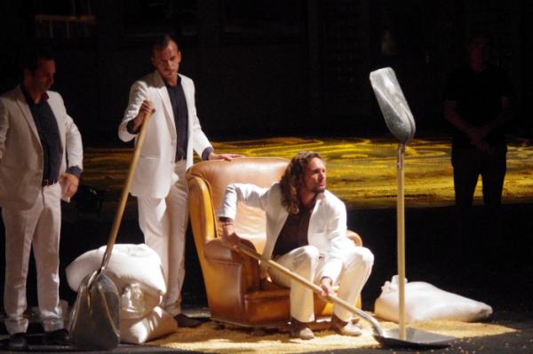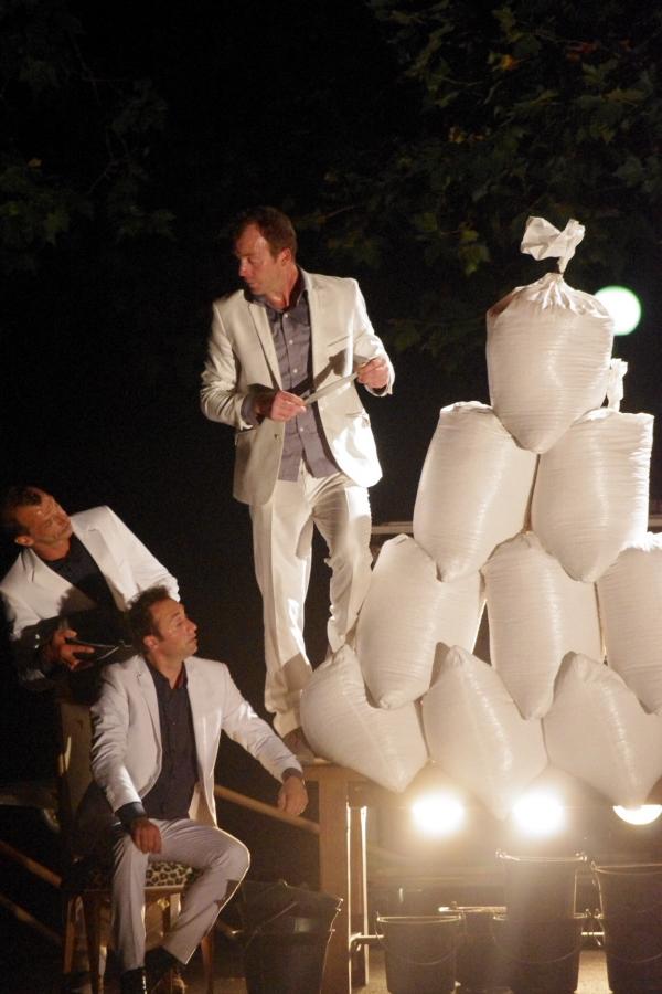 Le quatuor manie les pelles non comme des ouvriers, mais comme des boss de clans de l’industrie agro-alimentaire. Au début, on cherche un équilibre précaire en utilisant une pelle pour en porter une autre, posée sur la pointe de son manche. En effet, ce genre de jonglage ou d’équilibrisme mérite son appellation de cirque d’investigation.