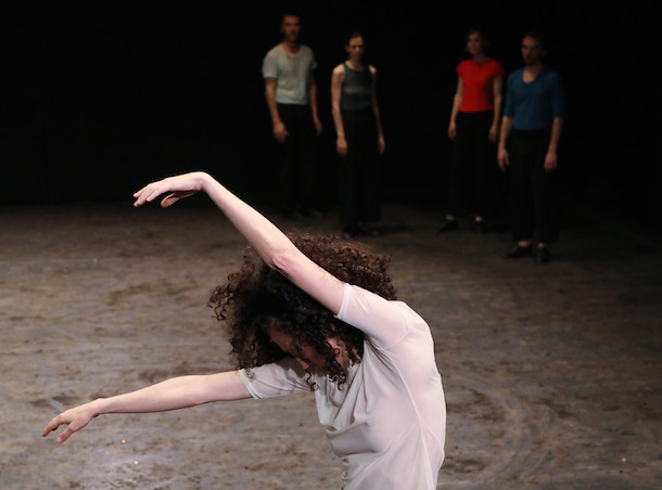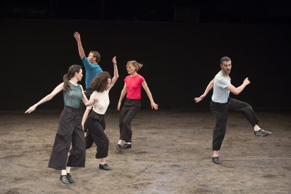 L'accroche au sol est donc intense, mais pour mieux permettre des envols bondissants, larges et ouverts, porteurs de regards très franchement adressés – aussi bien entre interprètes, très à l'écoute, qu'en direction des spectateurs, sollicités. Les trajectoires en boucles, en grands balayages, inscrivent la trace, composent la trame, démangée par l'envie d'élévation.