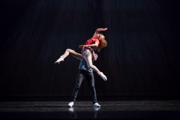 Malgré l’aspect narratif, dispensable pour nous, en dépit des gros plans qui tuent ou du moins qui éclipsent les danseurs s’escrimant sous nos yeux détournés, fascinés par les photons, le court métrage fonctionne dialectiquement avec les événements hic et nunc. Dans cette pièce créée l’an dernier ayant pour titre Orpheus Highway, on trouve une rousse flamboyante s’ébattant avec « Orfeu negro », les représentations en 2D nous distrayant du spectacle en 3 D. Le ballet interactif rappelle quelques autres échanges images-danse dans l’histoire, de Merce Cunningham à Lucinda Childs – en ce sens, Orpheus Highway est le Dance de Millepied. Les prises de vue en extérieur font aussi songer au film NY Export : Opus Jazz (2010) adaptant le Ballet in sneakers (1958) de Jerome Robbins.