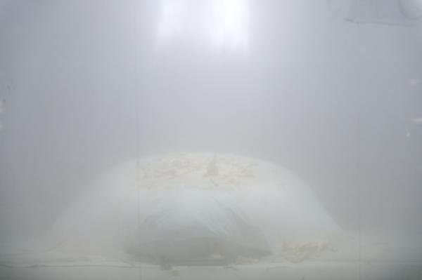 Cette poudreuse se dépose et bientôt apparaît un monticule à la géographie abstraite et aussi mystérieuse que L’Origine du monde qui évoque possiblement le « baiser à la terre » inscrit dans le livret comme première partie du Sacre du printemps originel.
