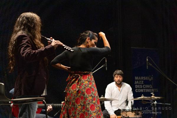 La veille, le concert du Jorge Pardo Trio et la danse de Karen Lugo avaient investi le plateau du Comœdia, en coproduction avec le festival Marseille Jazz des cinq continents. Et la flute était au centre. Car Jorge Pardo en est un grand maître, compositeur et grand voyageur entre les cultures musicales et en son temps flutiste attitré du grand jazzman Chick Corea qui vient de nous quitter, en févier 2021. Chez Pardo, la flute traversière est gage de traversées stylistiques. Les citations dont il garnit ses compositions vont du Boléro à Manuel de Falla, de musiques de films au rock de Jethro Tull (autre intrusion historique de la flute traversière dans un univers spécifique).