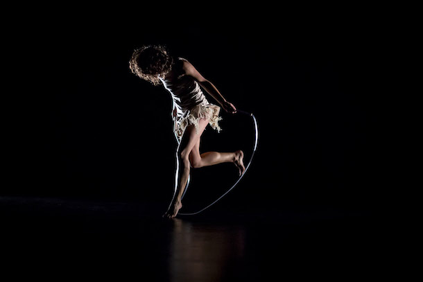 « Je vais à New York quand je veux être dans le présent » dit-elle, après s’être interrogée : « Où est la Tchécoslovaquie ? » En sautant à la corde, accompagnée du musicien Philip Misek, elle crée un théâtre d’ombres (à la fois du passé et du présent) et transforme ses sauts en matière chorégraphique, en modulant les intensités, les tempi, les lumières et son rapport à l’agrès lequel finit, tournoyant d’une lenteur étonnante, par se transformer en corde molle et ressembler, sous l’effet des lumières, à une bulle de savon géante.