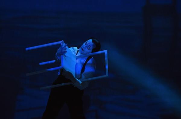 Bien sûr, on retrouve dans cette création d’art total - à laquelle a collaboré également Lucinda Childs - toute la machinerie habituelle dont use et abuse depuis des décennies Bob Wilson : éclairages monochromes, attitudes hiératiques, plans découpés façon cinéma muet etc. Mais là où ces marques de style semblaient, dans les derniers spectacles du metteur en scène américain, plaquées et vides de sens, elles illustrent ici parfaitement les différents états mentaux de celui qui fut le danseur le plus célèbre de son époque.