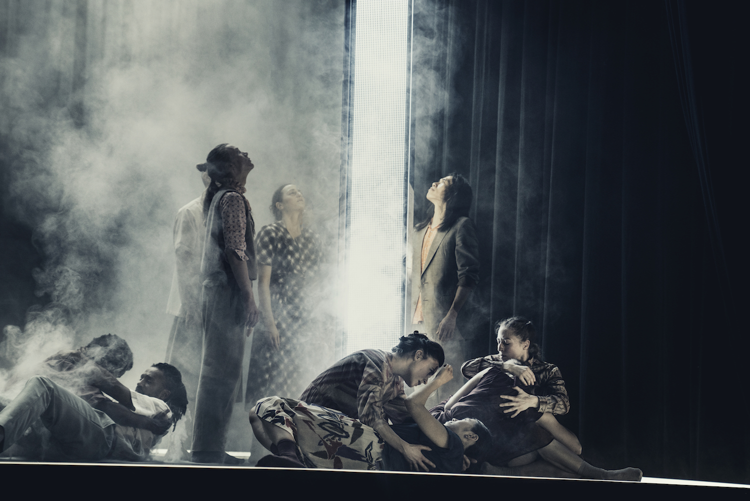 Ne serait-ce que par son titre, le « spectacle » de Hofesh Shechter, coproduit par le Théâtre de la Ville et la Philharmonie de Paris, rappelle le ballet de Lucinda Childs, Available Light (1983), que nous avions découvert à Louvain, peu de temps après sa création et revu au Théâtre de la ville intramuros en 2015. La pièce de Shechter se déroule aussi, par intermittence, sur deux étages. On peut prendre le titre en anglais dans ses deux sens : celui de lumière et celui de légèreté.