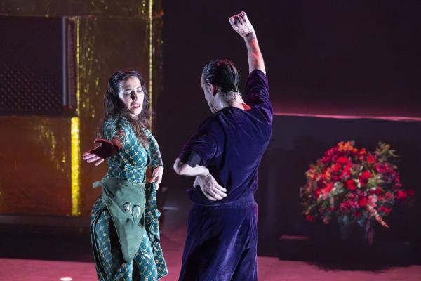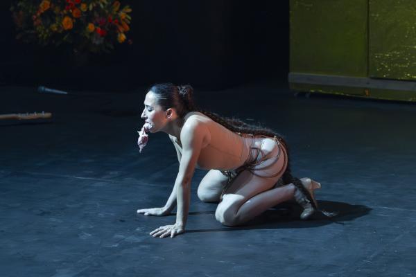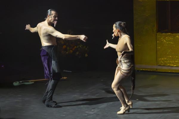 Dès les premières minutes, l’air se charge d’encens, les images s’entrechoquent, les corps s’embrasent. Antonio Campos, chanteur d’une intensité brute, découpe un agneau sacrificiel avec la précision d’un officiant antique : un geste qui pourrait être provocateur, mais qui ici devient symbole, offrande, matière première d’un théâtre viscéral. Les danseurs ramassent les morceaux avec la bouche, se les transmettent comme un secret archaïque.