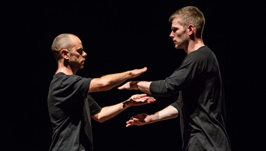 A l’intérieur du cercle, Hamilton et Macindoe se meuvent sans aller nulle part, se tiennent face à face, dans toujours la même distance minimale, sans jamais se toucher. C‘est le seul mouvement qui leur est interdit, dont ils ont été déprogrammés. Mais à partir de ces deux contraintes, ils inventent une syntaxe riche de moult articulation imprévisible, dans une contredanse actuelle, influencée par les débuts de Hamilton dans le hip-hop.